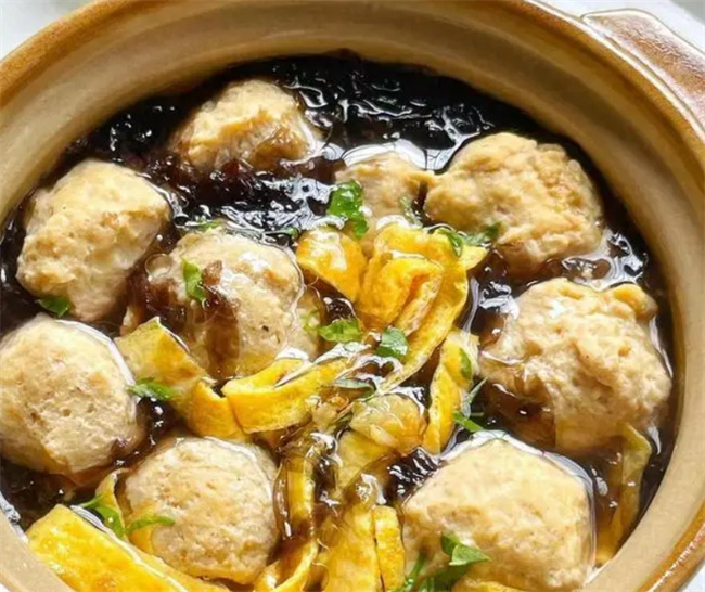 四、雞肉丸子湯 做法: 1. 雞胸肉切成丁,攪拌至起膠,加入料酒、生抽、蠔油、食鹽和胡椒粉,攪拌均勻。 2. 捏成丸子的形狀,入沸水焯水,撈出備用。 3. 準備紫菜、香菜和煎雞蛋皮,切成細絲。 4. 鍋中燒水,加入丸子,煮至浮起,然后加入紫菜、煎雞蛋皮、香菜和調味料:芝麻香油、食鹽。 5. 大火收汁,出鍋前再撒上一些香蔥末。 這碗雞肉丸子湯溫暖而營養,丸子嫩滑,滿滿的家的味道。