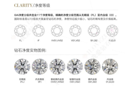 1、鉆石色澤凈度級別表鉆石的色澤對照表一般指的是鉆石顏色級別表,天然的鉆石具有多重的色澤,經(jīng)過光的折射和色散后呈現(xiàn)的顏色多姿多彩,鉆石的顏色決定其黃白的程度,鉆石的色澤共分為11個等級,大致為D-N級別,鉆石顏色越接近D等級,則鉆石色澤越透明,k色后顏色就越黃,無色透明鉆石為D、E、F等級,鉆石最為普遍的色澤為G-J級。 鉆石的凈度往往決定著內(nèi)含物的含有量,鉆石凈度等級從低到高分別為I3、I2、I1、SI2、SI1、VS2、VS1、VVS2、VVS1、IF、FL,珠寶市場上不出售I3-I1級別的鉆石,其凈度較差,通過肉眼觀察可以明顯看到內(nèi)含物,等級最高的為FL級鉆石凈度,其內(nèi)部完美無瑕。 2、鉆石一般買什么凈度好鉆石一般買S級、VVS級、VS級的凈度好,而FL無暇級的鉆石凈度最好,鉆石的凈度一般有11個等級,共有6個類別,輕微暇級的鉆石使用肉眼觀察不到內(nèi)部的瑕疵,只有使用專業(yè)的儀器才能夠觀察到,不影響日常的佩戴,在10倍的放大鏡下也難以看到內(nèi)部的瑕疵和缺陷。 3、鉆石選凈度還是顏色購買鉆石時,要同時考慮鉆石的凈度和顏色,還要衡量鉆石的切工和克拉數(shù),鉆石凈度和顏色同等重要,鉆石的凈度和顏色在很大程度上決定了鉆石的市場價值,鉆石的凈度決定鉆石的內(nèi)含物與瑕疵,而鉆石顏色一般有彩鉆和無色鉆石,盡量選擇無色且凈度好的鉆石,具有一定的保值作用。 |