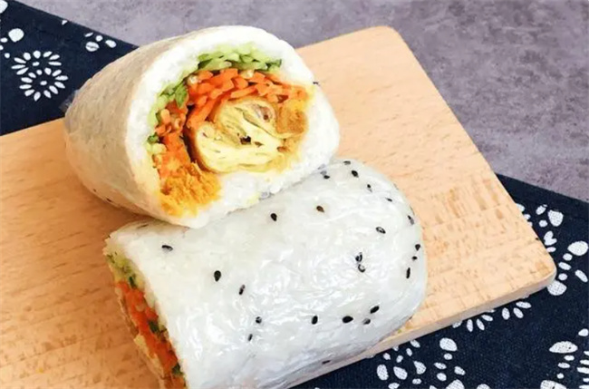一、紅豆糯米糕 所需食材:糯米粉200克、牛奶250克、白糖30克、淀粉50克、蜜紅豆50克、干桂花適量。 制作步驟: 1. 將糯米粉和淀粉放入一個(gè)碗中,加入白糖和蜜紅豆,倒入牛奶。 2. 用筷子攪拌,直到?jīng)]有干粉和顆粒,變得細(xì)膩順滑。 3. 準(zhǔn)備小蛋糕模具,刷上一層油,將面糊倒入模具中,裝八分滿即可。 4. 加水的蒸鍋,將模具放入,小火蒸20分鐘,蒸熟后取出,撒上干桂花,即可享用軟糯香甜的紅豆糯米糕。 二、油條糯米飯團(tuán) 所需食材:糯米200克、大米100克、黑芝麻1勺、黃瓜1根、胡蘿卜1根、油條1根、肉松1碟、鵪鶉蛋5個(gè)、沙拉醬適量。 制作步驟: 1. 淘洗糯米和大米,將糯米提前浸泡一晚,倒入電飯鍋,加入適量清水,煮成糯米飯。 2. 將黃瓜和胡蘿卜洗凈,切成細(xì)絲。 3. 將鵪鶉蛋放入鍋中,加水煮8分鐘,煮熟后剝殼,切成兩半。 4. 準(zhǔn)備保鮮膜,撒上黑芝麻,先放上糯米飯,用鏟子鋪平,放上黃瓜條、胡蘿卜條、肉松,再放一個(gè)油條,擠上沙拉醬。 5. 用手卷緊,切開后即可享用口味豐富的糯米飯團(tuán)。