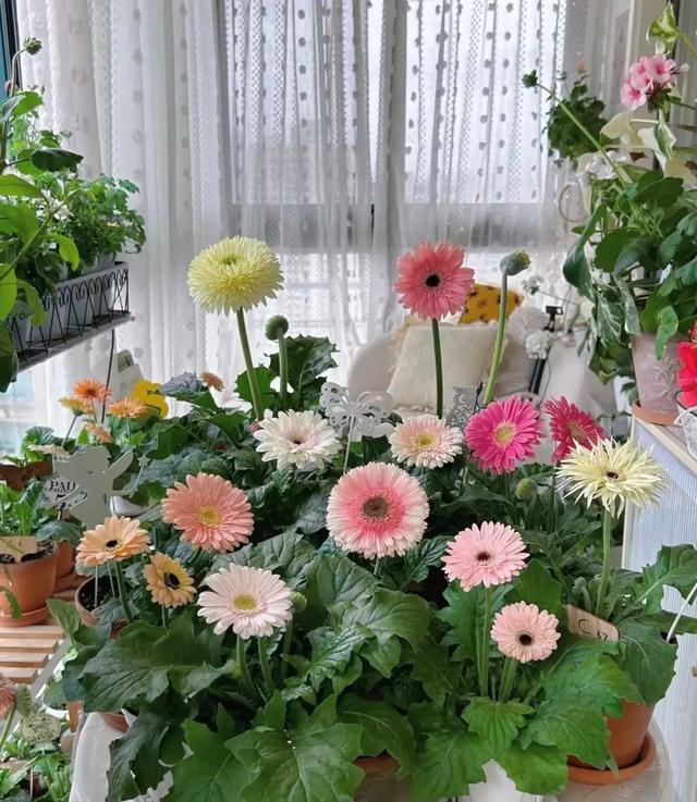 這是一個(gè)非常著名的年宵花,花朵顏色豐富,每一朵都像兔子的耳朵,又可愛又精致,挺立漂亮,似乎是歡迎賓客的到來(lái),好看極了。但是這個(gè)花噴水可就糟了。它的花朵聚在頂上,一噴水,花兒就容易蔫,甚至還會(huì)影響花芽的生長(zhǎng)。澆水時(shí),繞著花盆邊兒來(lái),別讓水花濺到花和葉子上,這樣既能保濕,又不傷花。當(dāng)缺水時(shí),正確的做法,是沿著花盆的邊緣慢慢澆入,等到排水孔中有水流出即可。 非洲菊