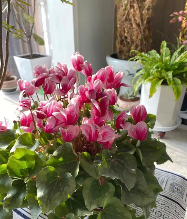 君子蘭這花兒看著挺壯實(shí)的,葉片油亮亮的,但是,它的葉心可是怕水的。你如果給它噴水,水珠兒很可能會(huì)順著葉片流到葉心,那兒的水分蒸發(fā)不掉,君子蘭的心臟——假鱗莖就可能會(huì)水澇,不僅影響它抽花箭,還可能讓葉心爛掉。要是覺得它干,用濕毛巾輕輕一擦,既清潔又補(bǔ)水,多好。尤其是把啤酒稀釋后,然后浸泡毛巾,再用毛巾擦拭葉片,可以使葉子變得又光滑又靚麗,十分好看。 仙客來(lái)