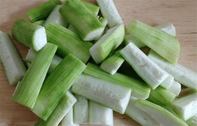 其次,處理絲瓜。將絲瓜去皮,去掉兩端,然后切成想要的長度。將切好的絲瓜放入開水中焯一下,這樣做可以破壞絲瓜內部的多余水分,防止腐爛。