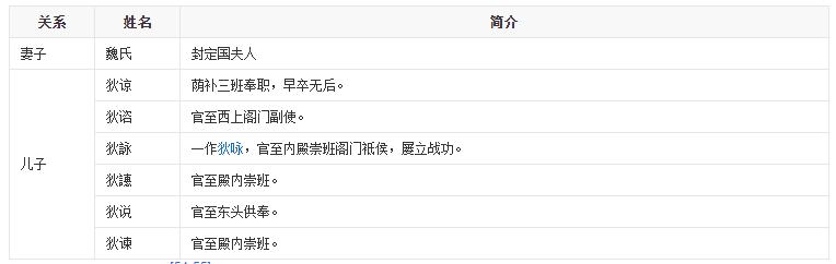 5.4、推功將佐 狄青尤其喜歡將戰功推給輔佐將領。當初,他與孫沔一同擊敗儂智高叛軍,戰術謀劃都出自狄青,但叛亂平定后,處理后事,他便全交給孫沔負責,自己則毫不在意的退出來。孫沔開始時贊嘆他的勇猛,這時更欽服他的為人,自以為不如他。尹洙因貶謫而死,狄青全力周濟他的家屬。 5.5、速議賞賜 狄青在率部南下征討儂智高后,宋仁宗常為他擔憂說:“狄青有威武的名聲,叛軍應會害怕他的到來。擔任左右傳令的人,非狄青的親信者不可,雖然是飲食起居的時候,都應該防備突然襲擊的發動。”于是派使者飛馳前線訓戒。等獲悉狄青已打敗叛軍,宋仁宗對宰相說:“快快議定恩賞,慢了便起不到獎勉的作用了。” 5.6、不攀名臣 一次,狄青正在辦公,兵士來報,說門外有人求見。狄青便命人將這個人帶進來,此人深施一禮后,拿出了一個包裹放到狄青面前。包裹中裝的倒不是金銀財寶,而是唐代鼎鼎有名的狄仁杰的畫像和十余道告身。所謂告身,簡單說來就是任命狀,一組完整的告身,就是一生的仕宦經歷,古人有的將告身隨葬身旁,有的傳給后人。狄青不解他的來意,來人說要將這些畫像和告身獻給狄青,因為狄仁杰是狄青的同宗遠祖啊。這人本以為狄青會很高興地同意,但狄青卻冷冷地說:“我只不過是一時機遇好罷了,怎么敢攀附狄仁杰大人呢?”隨即將他打發走了。 5.7、抑郁而終 據明代馮夢龍所編類書《智囊》記載:狄青擔任樞密使時,自恃功勛卓著,十分傲慢不馴,袒護士卒。士卒每次得到衣物糧食,都說:“這是狄家爺爺賞賜的。”朝廷上下都以此為大患。當時文彥博執政,建議宋仁宗讓狄青出任兩鎮節度使以便讓他離開朝廷。狄青上書說自己無功卻受封節度使,無罪卻又外放,心中很是委屈。宋仁宗也覺得他說的有道理,就向文彥博轉述了狄青的話,并說狄青是忠臣。文彥博說:“太祖(趙匡胤)難道不是周世宗的忠臣嗎?但因為得到軍心,所以才會發生黃袍加身、陳橋兵變的事。”宋仁宗聽了默然無語。狄青不知道這事,到中書門下去為自己辯白。文彥博盯著他,直截了當的說:“沒有其他原因,只是朝廷有些懷疑你罷了。”狄青嚇得禁不住后退好幾步。狄青到藩鎮以后,宋仁宗每個月都派使者去慰問看望他兩次。每次聽說皇上的使者要來,狄青都會整日驚嚇疑慮。結果不到半年,就生病去世了。這些都是文彥博的計謀。 6、狄青人際關系