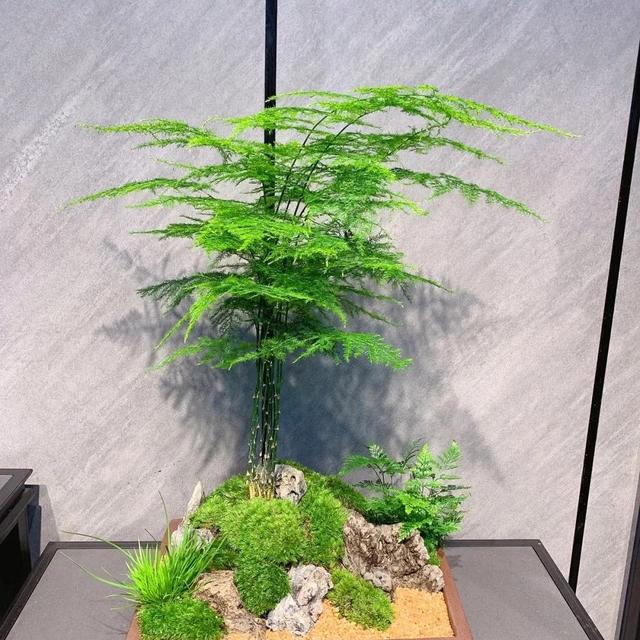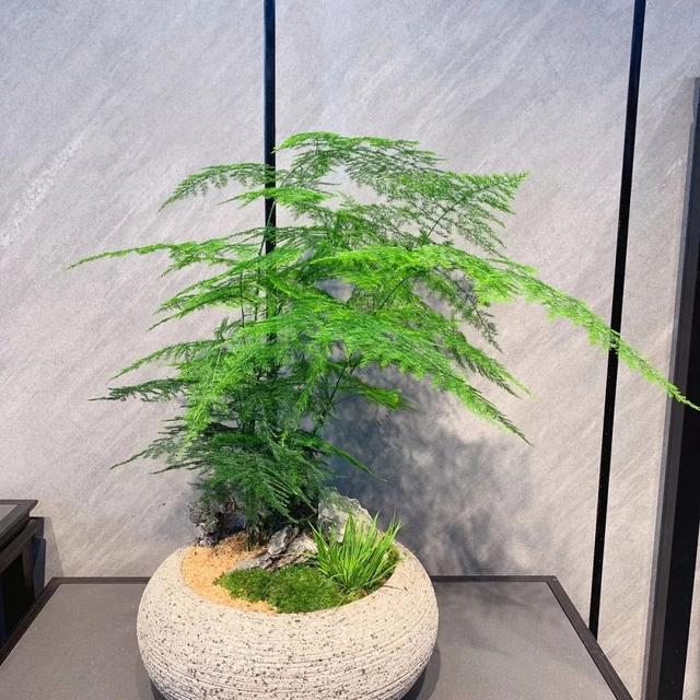 文竹在生活中是很常見的觀賞綠植,葉片很有層次感,青翠欲滴,用手去觸摸的時候非常柔軟。而枝干又纖細優美,亭亭玉立,簡單且高雅,有著非常高的欣賞價值,無數人會把它裝飾在客廳書房,營造出一種靜謐和諧的感覺。生活中有了文竹的存在,似乎是告別了喧囂,更多的是平靜和寧和。 在書桌上辦公桌上乃至周圍擺放一盆文竹,翠綠長青的葉片,可以緩解視覺的疲勞,提升空間的生活品質,是室內綠植的首選之一。