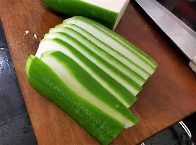 接下來,我們需要把絲瓜的皮削掉,然后切成薄片或者細條,這樣可以增加絲瓜的表面積,更容易入味。