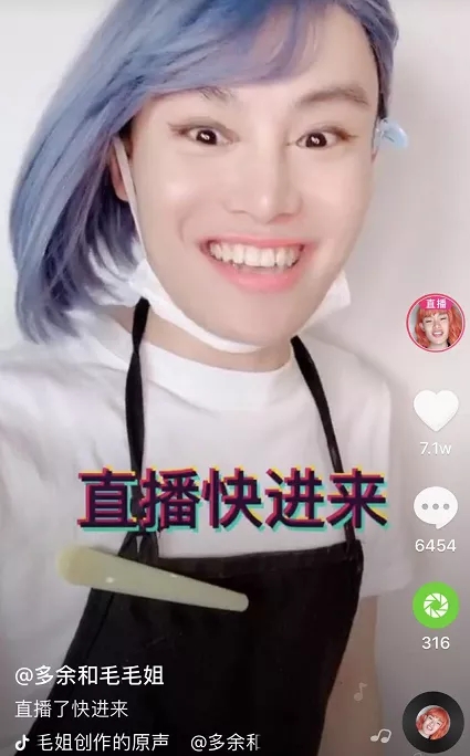 比如“多余和毛毛姐”,在直播前發布的直播預熱短視頻,直接說明“我要直播了,大家快進來”。這時候如果你對他的直播感興趣,點擊他的頭像即可進入其直播間。