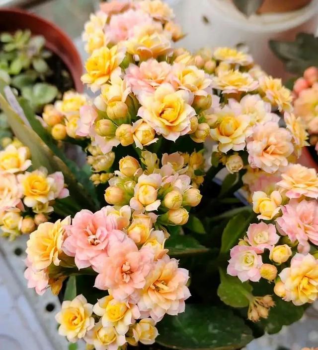 花朵大小適中,盛開時如同一群蝴蝶停留在綠葉之間,葉片呈現出深綠色,觸感厚實而有彈性,挺拔向上。長壽花的觀賞價值不僅在于它的花,其葉片的線條感也為它增添了幾分現代感,使其成為家居裝飾的佳品。 隨著秋末的腳步漸行漸遠,長壽花的花期也悄然臨近。從11月份開始,它便開始孕育著未來的花蕾,直至來年的四五月份,這一過程充滿了生命的期待與奇跡。在這漫長的花期中,長壽花將不斷綻放,為我們的生活帶來持久的美麗與溫馨。為了讓長壽花更加茂盛地開花,有兩種“作料”不可或缺:花多多二號和磷酸二氫鉀。