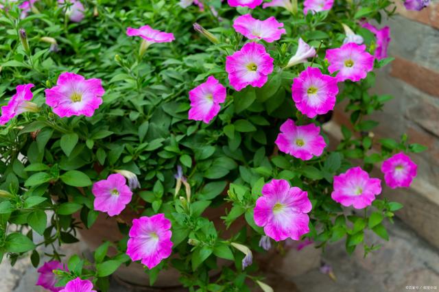 四、養護和管理光照:一旦種子萌發,將盆栽轉移到陽光充足的位置。提供充足的陽光是促進矮牽牛花生長和開花的關鍵。如果陽光不足,可以使用人工光源如LED燈來補充光照。 溫度管理:矮牽牛花的適宜生長溫度為15℃-25℃。在夏季高溫時要注意遮陰和通風,避免溫度過高導致生長受阻;在冬季低溫時要注意保溫,避免植株受凍。在極端天氣下,要適當采取措施保護植株。 澆水:澆水要遵循“見干見濕”的原則,即澆水時要確保土壤濕潤,但不要過濕。在夏季或干燥的環境下,需要增加澆水的頻率。注意避免過度澆水導致根部腐爛。如果使用塑料盆種植,要避免水積聚在盆底。 施肥:一旦植株開始生長,可以施加適量的花卉肥料或有機肥料,以促進植株生長和開花。遵循肥料說明書上的用量進行施肥,避免過量施肥以免損害植株健康。 修剪和分支控制:隨著植株的生長,需要定期修剪以保持形態美觀。修剪時間最好在花朵凋謝后進行,將殘花和枯枝剪掉,讓植株重新生長。適當修剪可以促進分枝和開花。根據需要調整修剪程度,以保持植株大小和形態美觀。 病蟲害防治:矮牽牛花可能會受到蚜蟲、白粉病等病蟲害的侵擾。定期檢查植株,發現病蟲害及時采取防治措施。可以嘗試使用生物防治方法,如用瓢蟲防治蚜蟲,盡量減少使用化學藥劑對環境的污染。如果需要使用化學藥劑,請按照說明書上的用量進行使用。