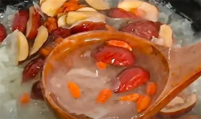 6、適量水的選擇: 銀耳和水的比例為1比5,即一個中等大小的銀耳泡開后需要加入約1000毫升的水。水太多或太少都會影響湯的濃稠度。 7、快速出膠妙招: 先用大火將銀耳湯煮開,然后轉中小火煮10分鐘,邊煮邊用筷子迅速攪拌。這會使銀耳之間產生摩擦,加速出膠,使湯變得透明且濃稠。 8、添加調味品和配料: 在湯中加入適量冰糖,繼續慢燉20分鐘。燉煮過程中要不停攪拌,有助于更好地出膠。最后加入枸杞和紅棗,再根據口味加入少許鹽。 9、煮湯的注意事項: 砂鍋是最佳選擇,煮銀耳湯時不要加水,如果需要加熱水,也要確保水溫不會下降,避免影響銀耳的出膠率和口感。