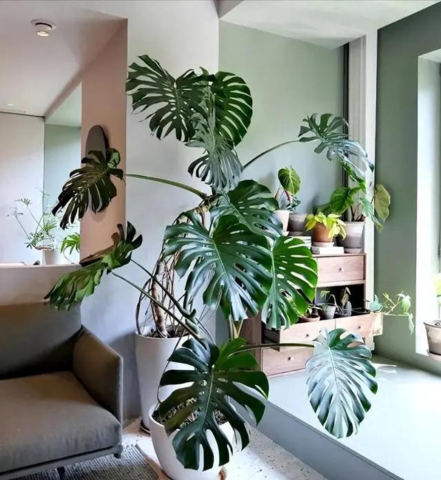 2、龜背竹裝飾的客廳 房間里有一扇巨大的落地窗,陽光透過窗戶照射進來,像是融化的金子,為了增加空間的層次感,靠窗的位置還放著一株巨大的烏龜背竹子。 這株龜背竹,枝葉低垂,像是一條瀑布,搖曳得不成樣子,枝葉在陽光的照耀下,散發出一種奇異的光彩。 龜殼上的每一片竹葉,都像是一道碧綠的簾子,輕柔地垂下,給人一種雍容華貴的感覺,這一幕,就像是一幅古代的畫卷,在時間的長河之中,帶著一種悠遠的韻味。