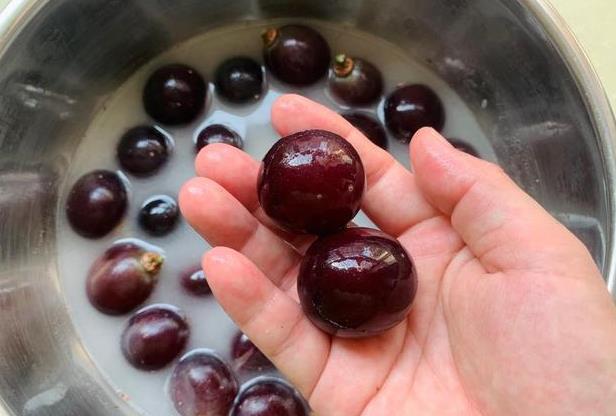 然后,在溫水中加入淀粉和食用鹽,攪拌均勻后將葡萄放入水中浸泡20分鐘左右。 接下來(lái),將葡萄撈出,用空瓶子輕輕擠壓,幫助葡萄表面的水分和污漬排出。最后,用清水沖洗干凈即可。