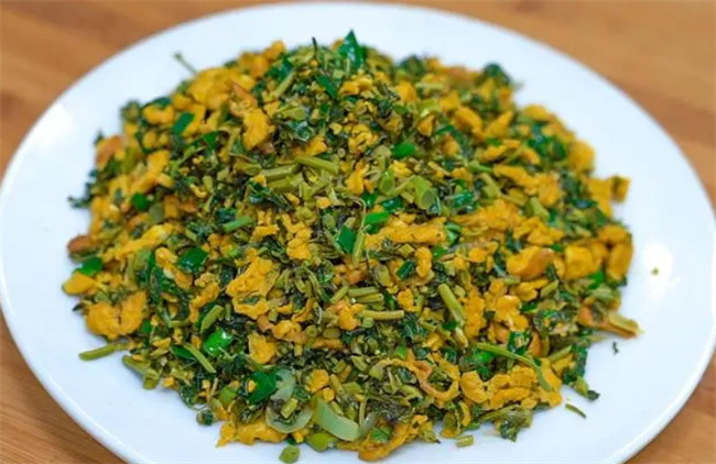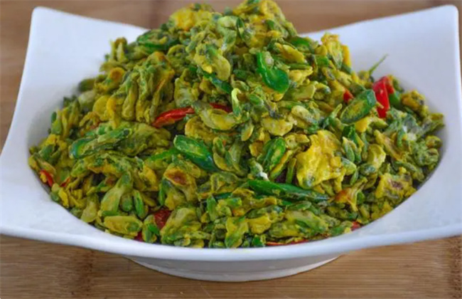 7. 槐花炒雞蛋 槐花搭配雞蛋,散發(fā)出清新的花香,給味蕾帶來(lái)愉悅的感受。槐花泡水,雞蛋打散后入鍋炒熟,加入槐花翻炒,調(diào)味后出鍋,一道花香撲鼻的槐花炒雞蛋完成。