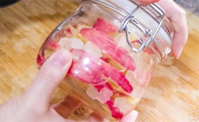 二、注意事項 自制的蘋果醋需要用水稀釋后飲用,一般按照1:8的比例來稀釋,根據個人口味也可稍作調整。此外,自制的蘋果醋應保存在陰涼處或冰箱中,讓其發酵一個月左右。蘋果醋的口感會隨著時間的推移變得更為濃郁。 三、營養與美味并存的蘋果醋 制作好的蘋果醋蘊含著豐富的酵素、醋酸、維生素、果膠等成分,這些元素對于脂肪的分解有著積極的作用。不僅如此,蘋果醋還能促進腸道蠕動,有助于減肥瘦身。此外,蘋果醋還有助于促進新陳代謝,增強免疫力,凈化毒素,是一款夏日的佳品。