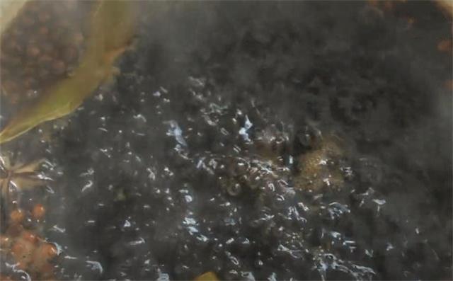 4.再來調個料汁,生抽50克,白醋50克,涼開水150毫升,八角兩顆,香葉幾片,花椒一把,50克冰糖,開小火把料汁熬一會兒,輕攪動一下,讓冰糖化開,等料汁燒開以后熬個兩三分鐘就行了,然后關火放涼備用。