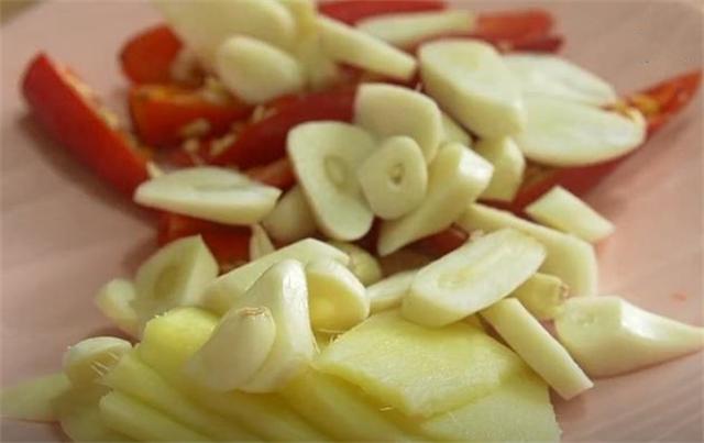 3.準備適量的小米辣,斜刀切成片,生姜切成片,洗凈的大蒜也切成片備用。