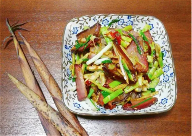 春筍具有清淡鮮嫩的口感,且富含營養。它有滋陰涼血、清熱化痰、利尿消腫、通便的功效。春筍富含植物蛋白、鈣、磷、鐵等人體所需的營養成分和微量元素,因此是一種高蛋白、低脂肪、低淀粉、富含纖維素的營養美食。它的高纖維含量更使其被譽為刮油神器!此外,春筍也富含維生素A,對眼睛的發育起著重要的作用,有助于合成視網膜視桿細胞的感光物質。春筍炒臘肉是這個春天您不能錯過的美味佳肴。