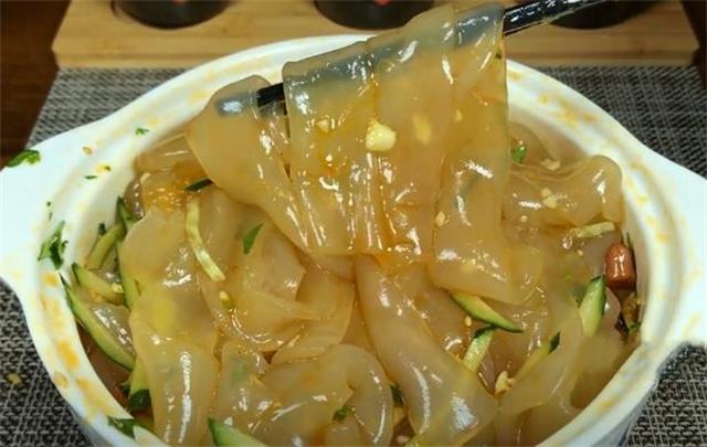 4.涼拌大拉皮,你就像我這么拌,清涼爽口又解膩,勁道爽滑可好吃了,喜歡的話你也試試吧。