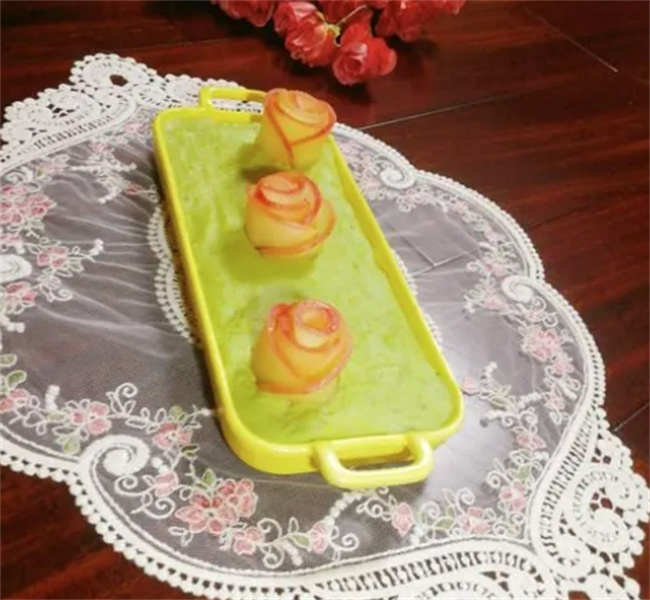 生活,需要儀式感,需要愛的表白,就讓我們通過一道甜蜜的表白甜點,用美味傳遞情感吧。這款蘋果玫瑰豌豆羹,將玉色的豌豆羹與美麗的蘋果玫瑰相融合,簡單的食材中浸潤著愛的味道,為生活添上了更多美好的色彩。