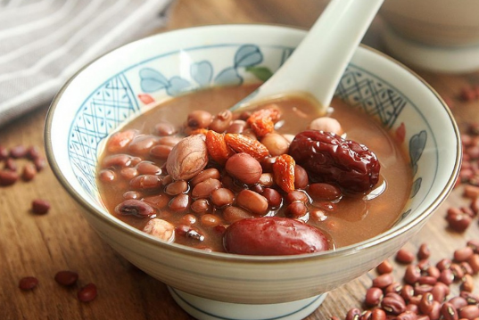 五紅湯的做法材料:紅豆、紅皮花生、枸杞、紅棗、紅糖 詳細做法: 1.準備小半碗的紅皮花生,把它清洗干凈后,倒入清水浸泡2-3個小時,紅豆也準備半碗,清洗干凈后一樣加入清水浸泡2-3個小時。準備7-8個紅棗,清洗后把它的核去掉,另外取一小把的枸杞清洗干凈后備用,紅糖可以根據自己的口味準備適量,一般用半塊紅糖就挺甜了。 2.浸泡時間到了,把紅皮花生跟紅豆連水一起倒入砂鍋里面,把準備好的紅棗也倒進去,然后加入適量的清水,如果想吃稀一點的就加多點水,水一次加夠,中途不要加水了。倒滿清水后,先開大火燒開,然后轉成小火燉60分鐘左右。 3.60分鐘后,打開蓋子,把枸杞跟紅糖倒進去,然后繼續小火煮10分鐘,讓紅糖充分溶化,這個時候可以不蓋上鍋蓋。時間到了之后,就可以關火出鍋了。空氣里一股濃濃的香甜味,吃起來挺好吃的,味道非常不錯,也可以出鍋放涼,然后放冰箱里冰鎮一下再吃,這樣子口感更好。 |