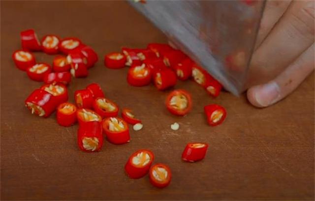 5.準備幾個小米辣切成圈,喜歡吃辣的可以多放一點。