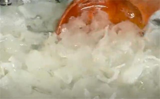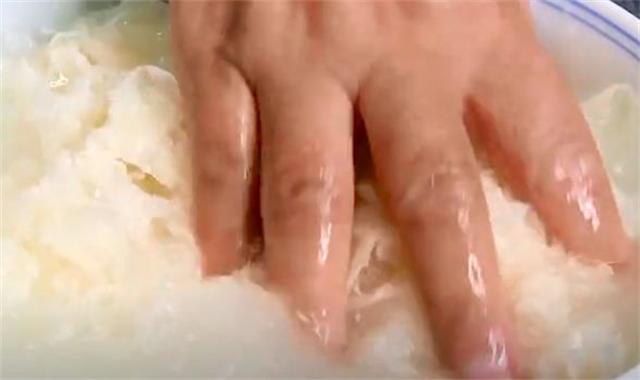2.三分鐘以后加入一勺鹽,再加入一勺面粉,鹽有消毒殺菌的作用,而面粉有很強的吸附能力,可以吸附掉銀耳表面的細菌和雜質(zhì),用手輕輕的搓洗一下銀耳,這樣洗出來的銀耳才會更加的干凈又衛(wèi)生。