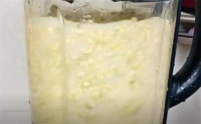 2.然后把黃豆倒入料理機中打成豆漿,水不要加的太多,不然不容易打碎,一次打不完,分多次盡量多打一下,打的越細膩越好,出漿率更高,做出來的豆花會更多。