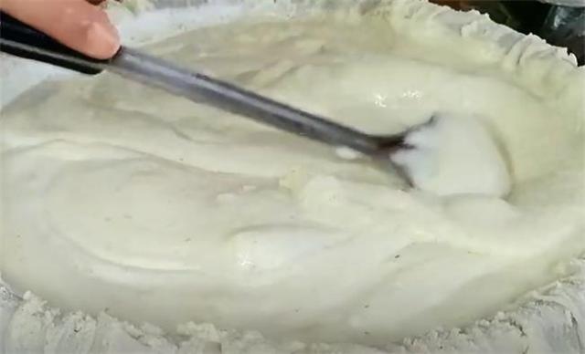 12.這是第四次,在沒有出現豆花的地方再倒一點,像這個狀態已經差不多了。