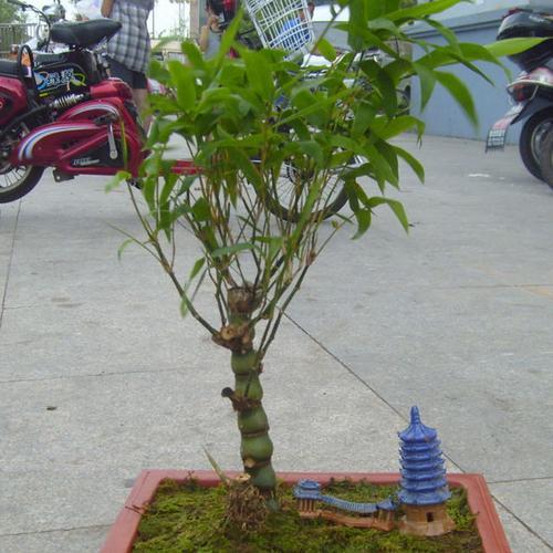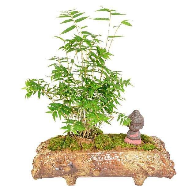 1、佛肚竹?? 一般情況下,佛肚竹可以長到幾米高,看起來和一般的竹子差不多,但是也有可能會長成畸形的竹子,高不過五十公分,樹干扭曲,上窄下粗,看起來就像是佛祖的肚皮。 園藝師正是根據這個特點,將其種植于盆中,以截枝的方式,培養出可供觀賞的畸形樹干。 這是一種很容易照顧的盆栽。上盆的時候要選擇比較松軟的土壤,喜歡潮濕,但是需要稍微耐陰一點,