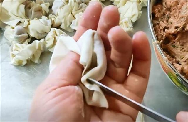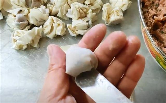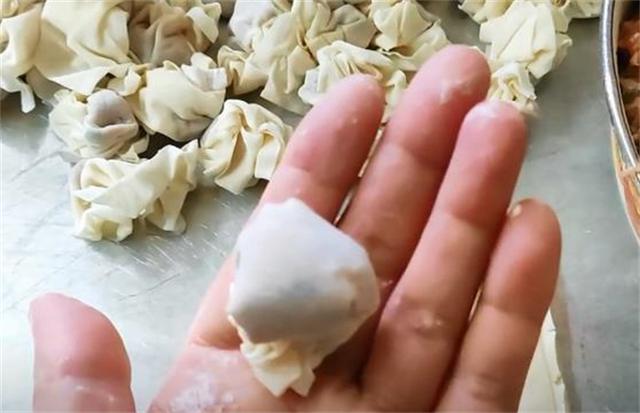 它的包法主要有兩個竅門,第一,不能把餛飩皮給捏太緊了,捏太緊餛飩皮煮熟之后就是一坨死面疙瘩,非常難吃。第二,一定要包成空心的,不僅更容易煮熟,而且煮熟之后也會更漂亮。