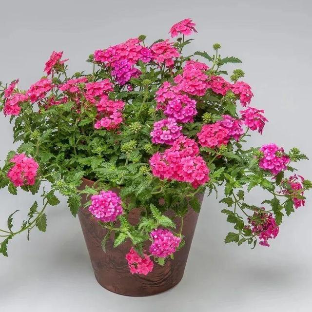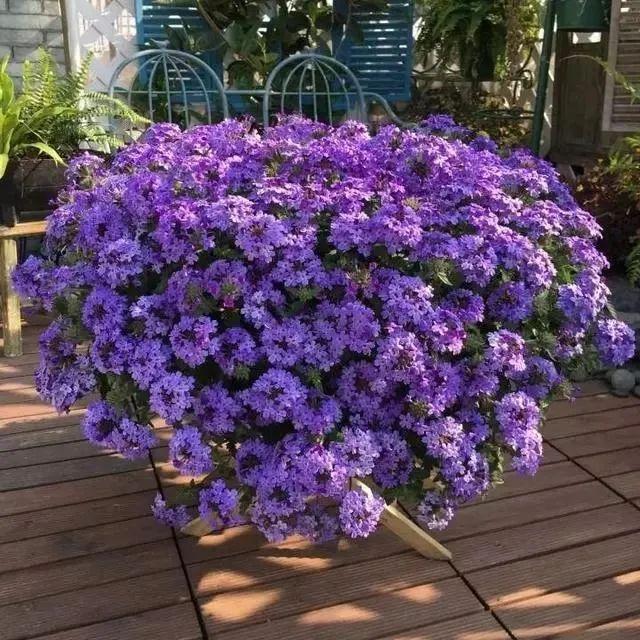 5、美女櫻 美女櫻種在花盆里,一般都會結(jié)出一個大球,因為它的枝干比較纖細(xì),所以一般都是攀援生長的, 如果是盆栽的話,完全可以把美人櫻吊在上面,形成一條盛開的瀑布,毫不為過,花朵很大,一年四季都可以開。 家里有幾株漂亮的美女櫻,也是一件很好的事情。