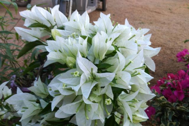 2、白雪公主 白雪公主三角梅是艾娃系列中的一種,開(kāi)著白花,植株不高,分枝不多,可以用來(lái)做花盆,也可以用來(lái)圍著院子,用來(lái)做柵欄,用來(lái)保護(hù)院子, 這樣的話,它的花期就會(huì)更長(zhǎng)了,它的顏色是純白的,看起來(lái)很漂亮,很有觀賞性。 但在北方,可能會(huì)受不了外面的溫度,通常在5攝氏度以下,就要做好保溫工作。