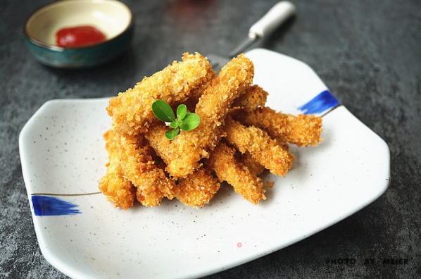 炸雞柳的做法1.用刀背在雞胸肉上輕拍幾下,使肉更松, 2.切成厚條備用, 3.加入鹽、胡椒粉、料酒和蛋清腌制半小時, 4.將蛋黃攪拌成液體雞蛋。準備面包屑, 5.將雞柳浸入雞蛋混合物中, 6.滾動面包屑,并將其均勻地浸入面包屑中, 7.倒入花生油,小火加熱油,加入雞柳,炸至金黃色,撈出控油。加番茄醬味道更好。 提示: 1.最好在熱的時候吃,但在冷的時候不脆。 2.加番茄醬味道更好。 3.腌制的時候可以根據自己的口味放腌料,可以加入五種香料、蠔油等。 |