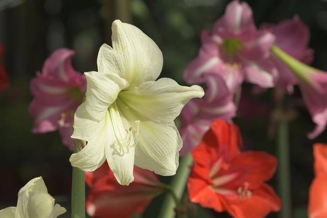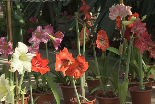 可以使用平衡肥料,如腐熟的有機肥料或植物營養(yǎng)液。但是,在開花期間,應減少氮肥的施用量,以避免花朵過度生長。 光照管理 朱頂紅需要充足的陽光才能進行光合作用并保持健康生長。在開花期間,應將其放置在陽光充足的地方,以確保花朵能夠得到足夠的陽光而不會褪色。但是,在夏季高溫期間,應避免陽光直射,以避免花朵受到損傷。