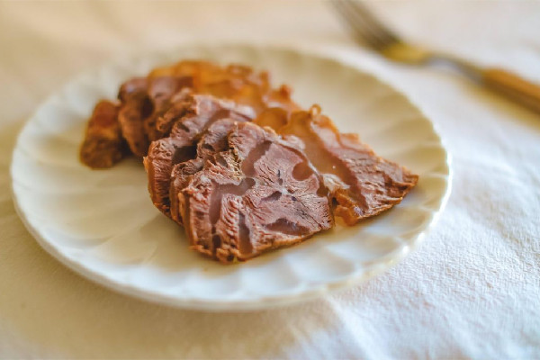 都說醬牛肉好吃所以就自己做了點,但是在切片的時候一下刀就散了這是為什么?醬牛肉要怎么切才會出現(xiàn)不散的現(xiàn)象? 醬牛肉為什么一切就散1.牛肉部位沒選對。不是牛所有的部位都適合做醬牛肉的。做醬牛肉最適合的部位是牛腱子肉,以前腿腱子肉為最佳。這是因為牛的前腿毽子,其筋和肉交織在一起,燉熟之后形態(tài)好看色澤有變化,易咀嚼口感很好。 2.切肉的方式不對。首先,切熟牛肉一定要等牛肉完全涼透了再切,熱的牛肉一切肉就散了不成型;其次切肉的時候要逆著牛肉的纖維紋理下刀,這樣吃起來口感才更好,不塞牙。