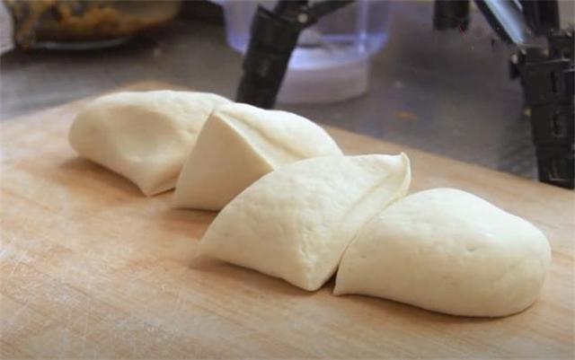 5.餳發(fā)后揉成長條形,然后切成大小均勻的劑子。
