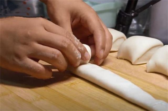 3.面團揉好之后,直接揉成長條形,分成大小均勻的劑子。