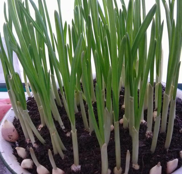 3、大蒜 老媽的陽臺上,永遠都是一排排的蒜苗。主要用來種植蒜葉,可以用來制作面食,也可以用來制作烤魚。 種下后,只要在盆內的土壤中,澆上一點水,讓土壤稍微濕潤一點,然后在上面開兩道水溝就可以了。 將大蒜從后到前,擺成一排,中間留有一個手指大小的空隙。最后再鋪上一層細細的土,再澆上水,最后才能把蒜葉摘下來! 到了拔蒜苗的時候,他們就能吃到一塊香噴噴的蒜苗燒肉了。最后挖了不少大蒜,準備等下一年種下去。