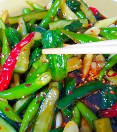 接下來,我們來看看具體的制作步驟。首先,將黃瓜洗凈切段,用鹽腌制30分鐘,去除多余水分。然后,將糖、醋、生抽、姜片、蒜頭等調料煮成腌汁,晾涼備用。最后,將腌制過的黃瓜放入腌汁中,冰箱冷藏2小時后即可享用。