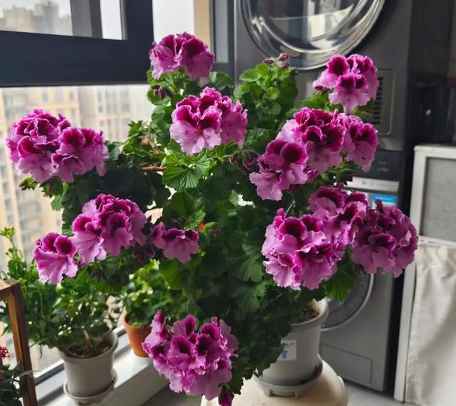 天竺葵是顏值與魅力共存的花,很適合養在陽臺窗臺,花朵像繡球,花枝招展,繁花似錦,使環境漂亮的像一幅畫。 天竺湖的花期很長,幾乎四季都在開花,但要保證充足的光照,和適宜的溫度,平時也要多做修剪,剪下頂芽之后,可以促進分枝,增加開花量。