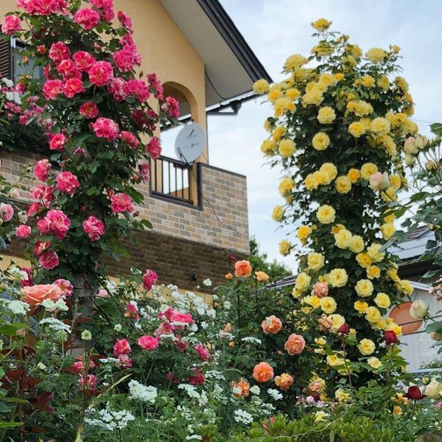 藤本月季最擅長的就是攀爬圍墻和柵欄,除了能形成一片“花海”外,還有一片屬于自己的百科網地,這才是最大的優點。 種植這些蔓藤月季,首先要做的,就是清理好花園,修剪好枝葉,噴灑好殺蟲劑。會種地的,滿院都是綠油油的,一旦開花,便是一片“花海”。