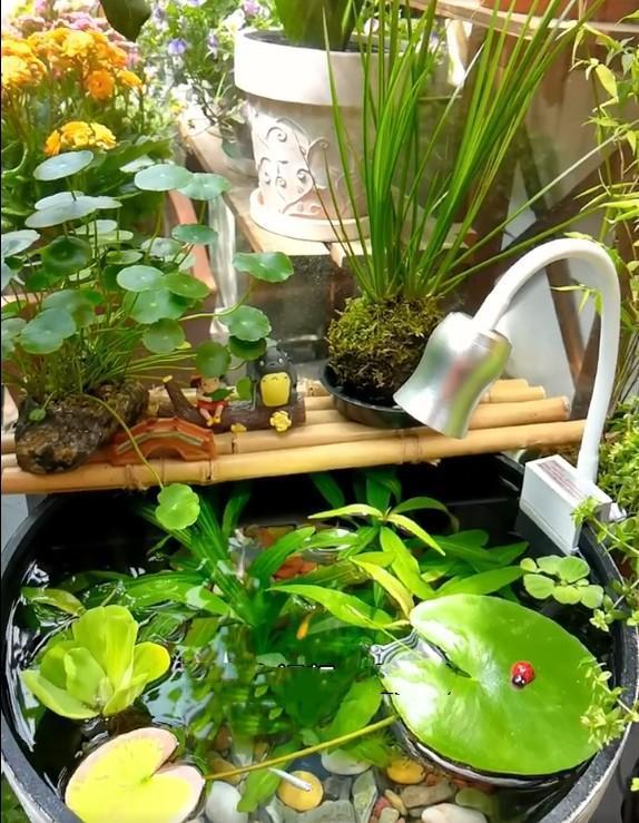 水培龜背竹、春雨、金錢草、蝴蝶蘭、虎皮蘭、君子蘭、藍雪花、薔薇、鐵線蓮、矮牽牛、長命燈……這些都被她發(fā)揮到了極致,將整個露臺點綴的綠意盎然,美不勝收。 尤其是女主的這個露臺,更是讓許多網(wǎng)民為之瘋狂,因為采用了一種古色古香的手法,將魚、水、花三者融為一體,讓人一進入這個小露臺,就有一種置身于熱帶雨林之中的錯覺。
