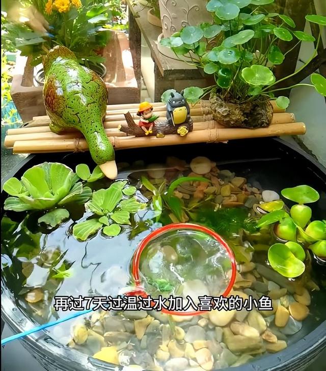 ③魚池中的魚苗 將小魚和布袋一同放入水族箱,注意布袋里的水不要流入水族箱,浸泡半個小時后,將水族箱里的水倒進布袋里,20分鐘后,再撈一勺,通常3次即可。 然后,把小魚拿出來,放入水族箱,前三日不喂,從第四日起,逐步恢復(fù)喂。 這就是古代生態(tài)缸養(yǎng)殖的整個流程。
