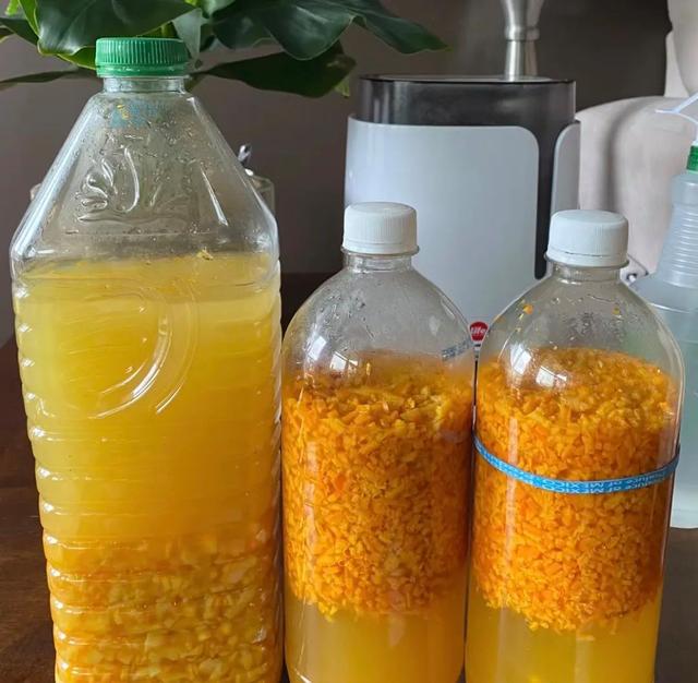 發酵方法,不純純用水,把橘子皮剪碎之后加入二杯清水,加一勺紅糖,加一勺食醋,充分混合均勻之后,放入大的礦泉水瓶里,每天打開蓋子攪拌攪拌,促進發酵,大概20到30天可以發酵好,使用之前兌水稀釋,不用肥料都能長的很旺盛。 第二種,蚯蚓糞便