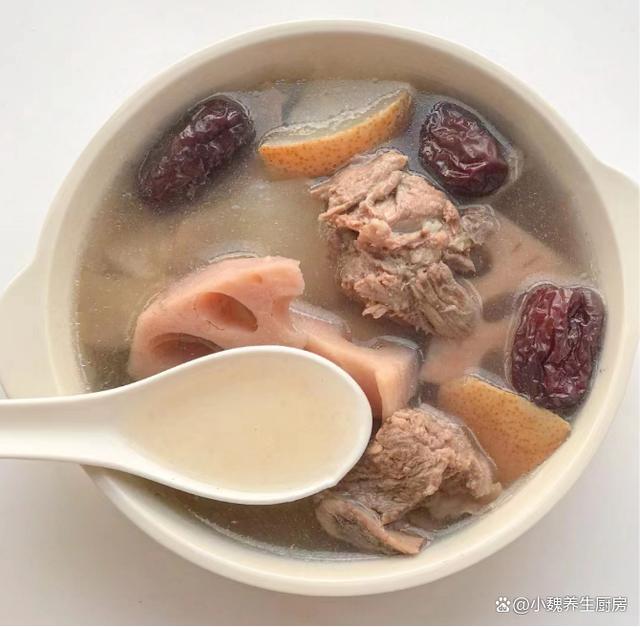雪梨蓮藕紅棗燉豬骨湯是入伏后必喝的鮮湯,南方人每周都喝它,湯汁鮮甜美味,營(yíng)養(yǎng)好喝還不油膩,補(bǔ)充許多營(yíng)養(yǎng)物質(zhì),補(bǔ)血養(yǎng)顏,潤(rùn)肺又健脾,對(duì)身體有許多好處。