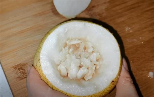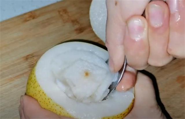 1.先把梨子用流水沖洗干凈,清洗干凈的梨子在上面給它切一個蓋子出來,然后把里面的核給它掏出來,接著用勺子給它敲出來。