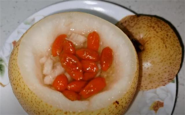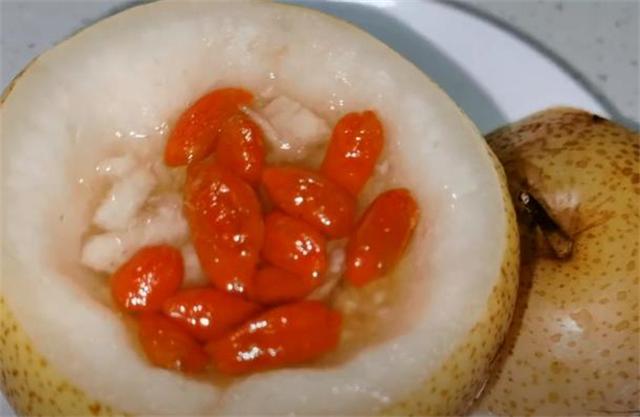 準備食材: 梨子、冰糖、枸杞 具體做法: