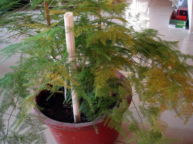 3、濕度的問題 文竹的葉片十分嬌嫩,極易受外力的影響,文竹的葉片會(huì)變得發(fā)黃,脫落,這些細(xì)微的變化,普通人感覺不出來,只有它自己才能感覺得到。 所以,在客廳、書房出現(xiàn)葉片發(fā)黃的現(xiàn)象時(shí),要及時(shí)補(bǔ)充水分。