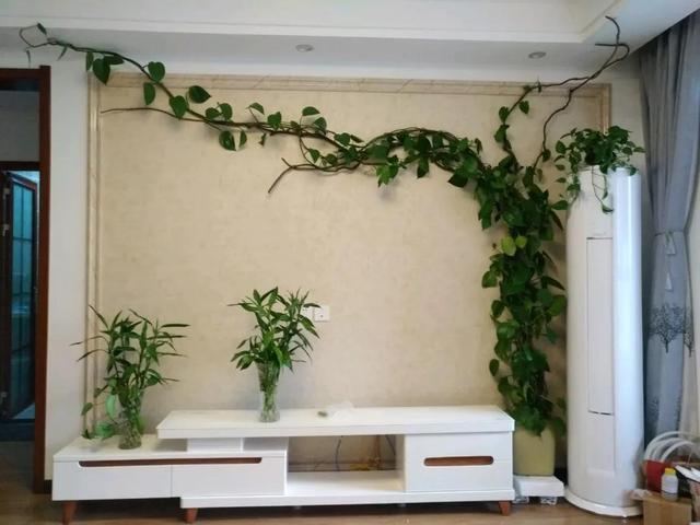 三、綠蘿的家居擺設別看它長得其貌不揚,但放在家里,卻有著很好的裝飾品,只要懂得搭配,它就是家里必不可少的綠蘿。 1、客廳墻角 綠蘿并不是什么大盆,擺在大廳里也就是個擺設,如果擺在角落里,不僅會占地方,還會給愛花的人一個驚喜。如果能在上面加點點綴,那就更好看了。 2、綠蘿墻面 我們可以看到,有一堵綠墻是很多人家裝飾的。而且這種植物長得很快,趙海只要拿出一種,放在空間里,就可以讓整個空間都被這種植物給覆蓋住了,到是讓人賞心悅目,美不勝收。