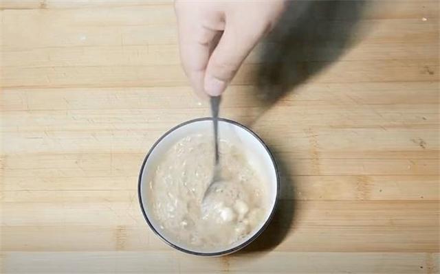 2.趁餳面的功夫,咱們做個油酥,一勺面粉,適量五香粉,一勺鹽,把熱油澆在上面,攪拌均勻即可。