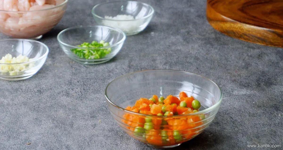 制作雞丁炒飯的步驟: 準備食材:雞肉、米飯、胡蘿卜、豌豆、洋蔥、蛋黃、鹽、醬油、料酒、生抽、淀粉、蔥姜等。 將雞肉切成小塊,用鹽、料酒、生抽、淀粉腌制20分鐘。 胡蘿卜去皮、洗凈,切成小丁;豌豆焯水備用;洋蔥切丁備用。 熱鍋冷油,將腌制好的雞肉倒入鍋中,煸炒至變色,盛出待用。 鍋中再加一勺油,放入洋蔥煸炒至微黃色,然后加入胡蘿卜和豌豆繼續(xù)煸炒。 加入蛋黃煸炒均勻。 將剩余的米飯加入鍋中,用鏟子將米飯拌勻。 加入鹽、醬油、料酒翻炒均勻,最后加入煸炒好的雞肉和蔥姜末,繼續(xù)翻炒均勻即可。 裝入盤中即可食用。 雞丁炒飯的技巧: 雞肉煸炒要快,這樣才可以保持肉質嫩滑。 米飯最好提前一天做好,晾到室溫后再使用;這樣可以避免炒出來的飯粒太軟粘稠。 煸炒過程中需要不斷攪拌,防止糊底或者糊鍋。 加入蔥姜能夠提升菜品的香氣,增強口感。 |